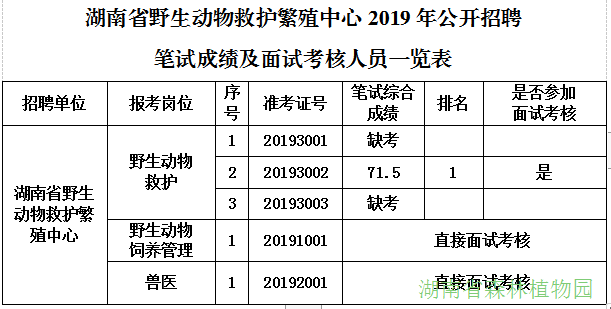 湖南省野生动物救护繁殖中心繁殖中心2019年公开招聘笔试成绩及入围面试考核人员通知