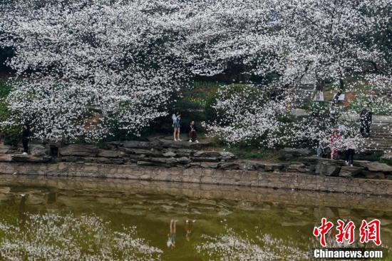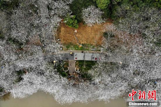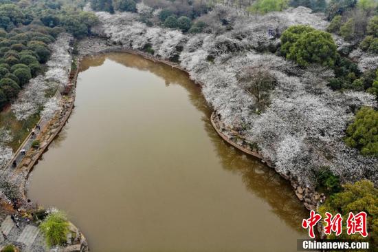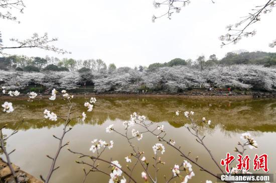 3月13日,被誉为赏樱圣地之一的湖南省森林植物园三千余株樱花盛开,犹如白色春雪覆盖在园内的湖畔四周,吸引了众多游人前来观赏。