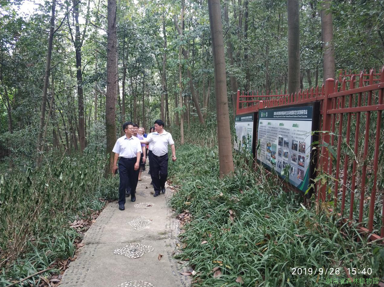 2019年9月26日下午,国家林业和草原局森林资源管理司徐济德司长我园调研指导。省林业局森林资源管理处黄勇处长、园党委书记彭春良、园主任刘玮和副主任何友军等领导陪同调研。徐司长分别调研了我园北门名花广场,长株潭生态站建设运行情况,珍稀植物园珍稀名贵树种迁地保育情况等工作。调研中,徐司长充分肯定了湖南森林资源管理和定位监测工作,表示湖南的“负(氧)离子”科普观测工作做得早做得好,并高度认可湖南的“康养”意识。