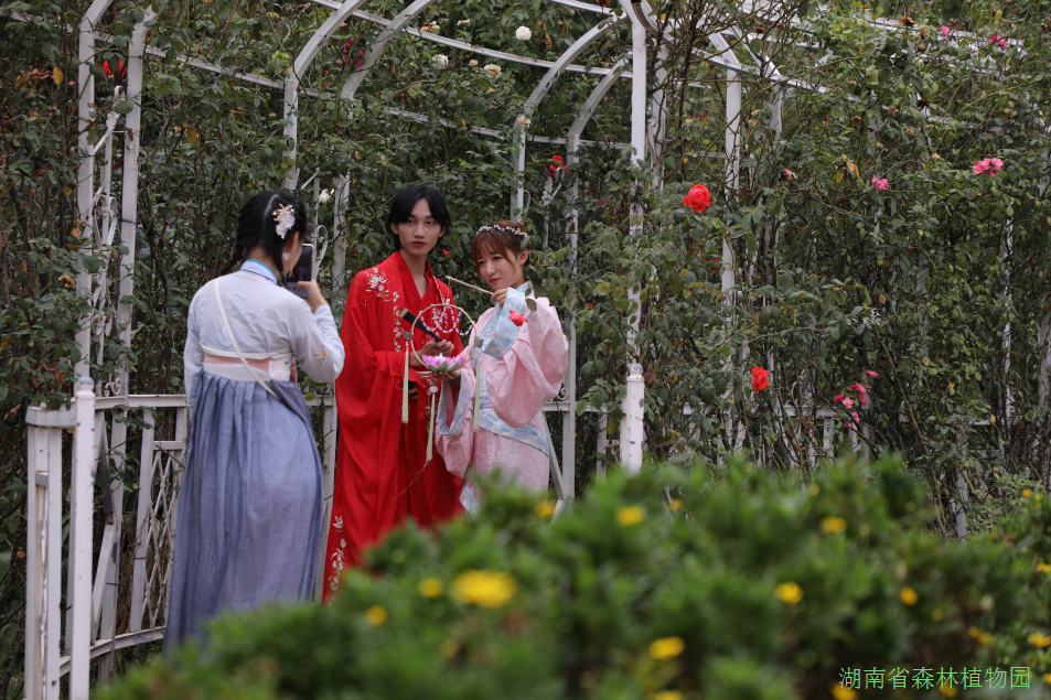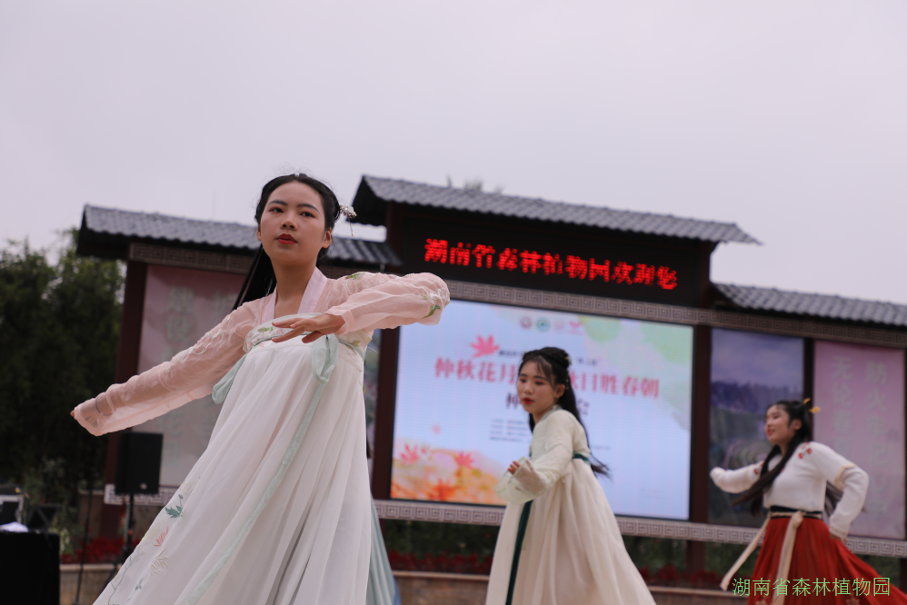 1013日下午,我园与省湖湘文化研究会合作的仲秋花月夜,秋日胜春朝”汉风游园活动在《丹枫迎秋》、《清欢怅》、《广寒宫》、《洛水佼人》等古风舞蹈中拉开了序幕,90多名来自长沙各大高校的汉服爱好者参加了活动。