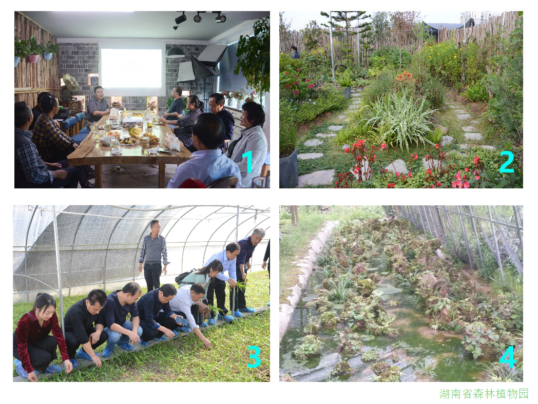 对张家界花木园林盆景协会调研指导(1.张家界艾佳园林绿化中心介绍公司花卉产业民菜情况;2.张家界艾佳园林绿化中心的实验基地;3. 张家界鹏举园林园艺有限责任公司的白芨组培炼苗大棚;4.张家界瑞苑绿化工程有限公司景岩壁花卉仿生栽培研究。)
