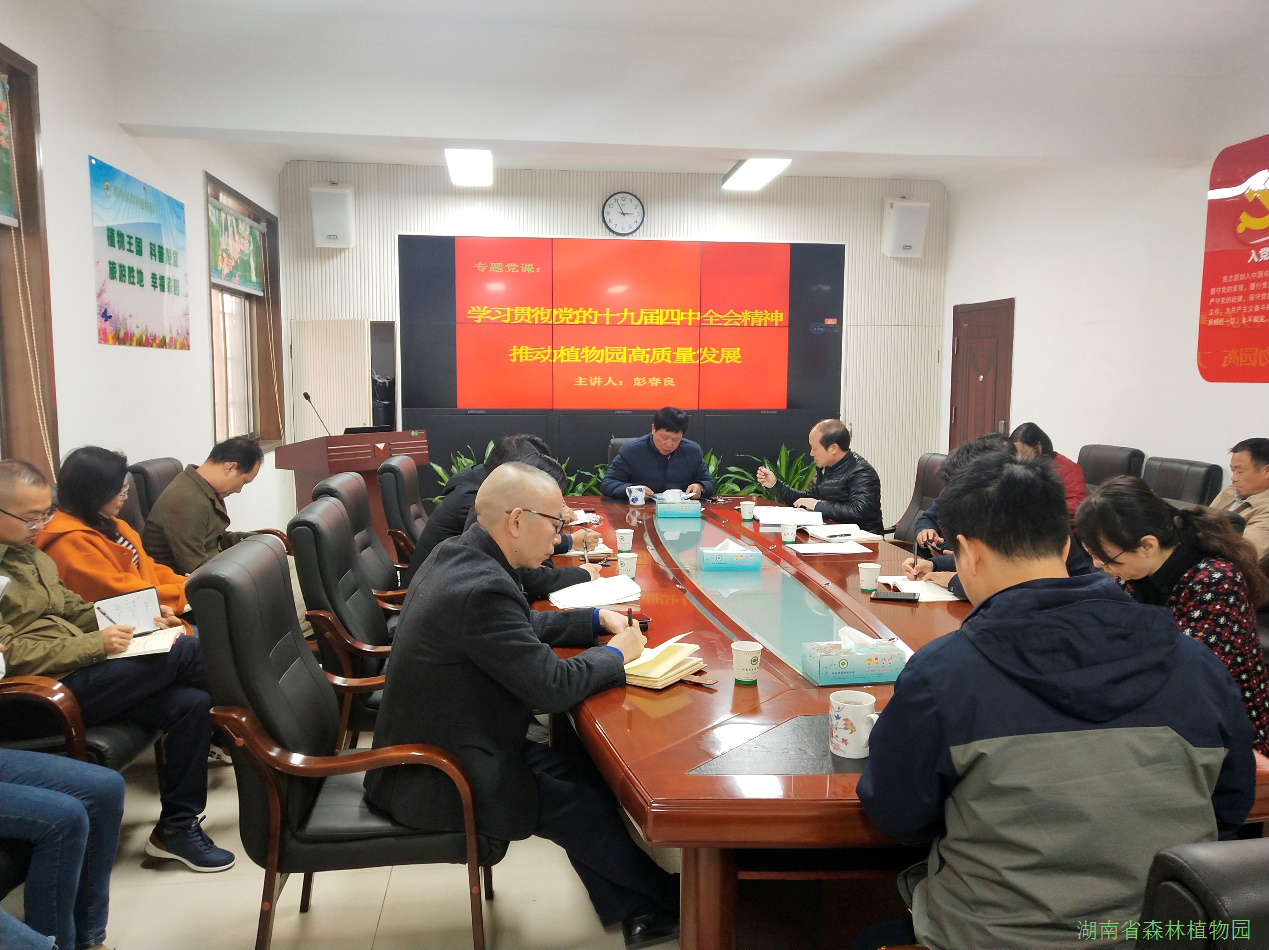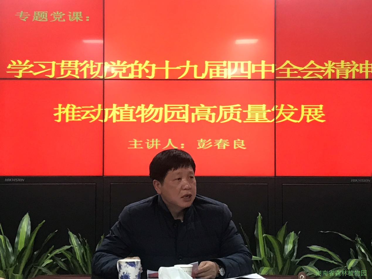 认真学习宣传贯彻党的十九届四中全会精神,结合“五个一”廉政警示教育月活动要求,11月21日下午,湖南省森林植物园党委书记彭春良以《学习贯彻党的十九届四中全会精神,推动植物园高质量发展》为题,为植物园党员同志及部门主要负责人讲党课,园党委委员、党政办主任康用权主持党课报告会。