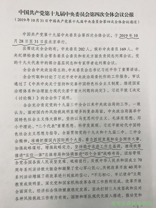 党的十九届四中全会闭幕后,我园纪检干部通过参加局直系统纪检监察业务培训学习,听书记讲党课,借助“学习强国”平台、“三湘风纪网”微信公众号等载体,认真学习全会公报,逐字逐句通读,读懂弄通精神实质。坚持学用结合,将学习全会精神与“不忘初心、牢记使命”主题教育各专项整治以及12月份的整改“回头看”相结合,认真分析党风廉政建设和反腐败斗争的热点难点问题,将全会精神融入到实际工作之中,力争将学习成果转化为推进纪检监察工作高质量发展的动力源泉。