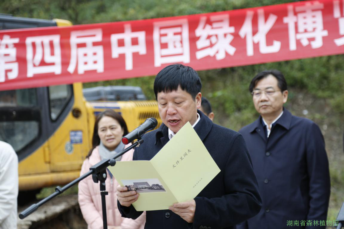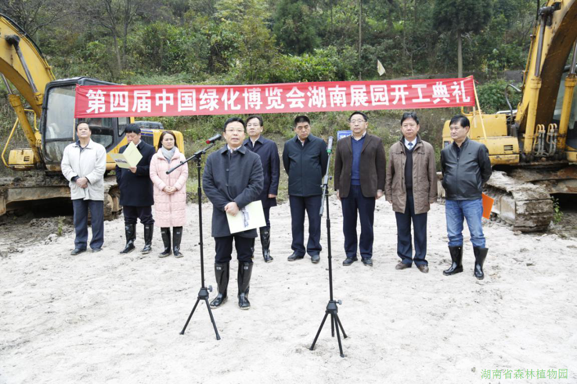湖南省人民政府副秘书长黎咸兴出席开工仪式并宣布湖南展园正式开工。贵州省黔南州委常委、州政府党组成员张凤臣致辞,湖南省林业局常务副局长吴剑波讲话,湖南省森林植物园党委书记彭春良发言。仪式由贵州省黔南州林业局党委书记、局长,第四届中国绿化博览会黔南执委会办公室副主任唐军主持。