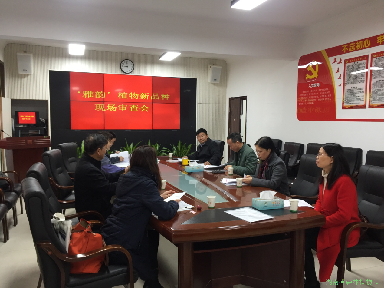 2019年12月8日,国家林业和草原局植物新品种保护办公室组织相关专家在我园召开植物新品种“雅韵”现场审查会议。参加审查的专家来自中国林科院亚林所、中国科学院上海辰山植物科学研究中心、浙江理工大学。