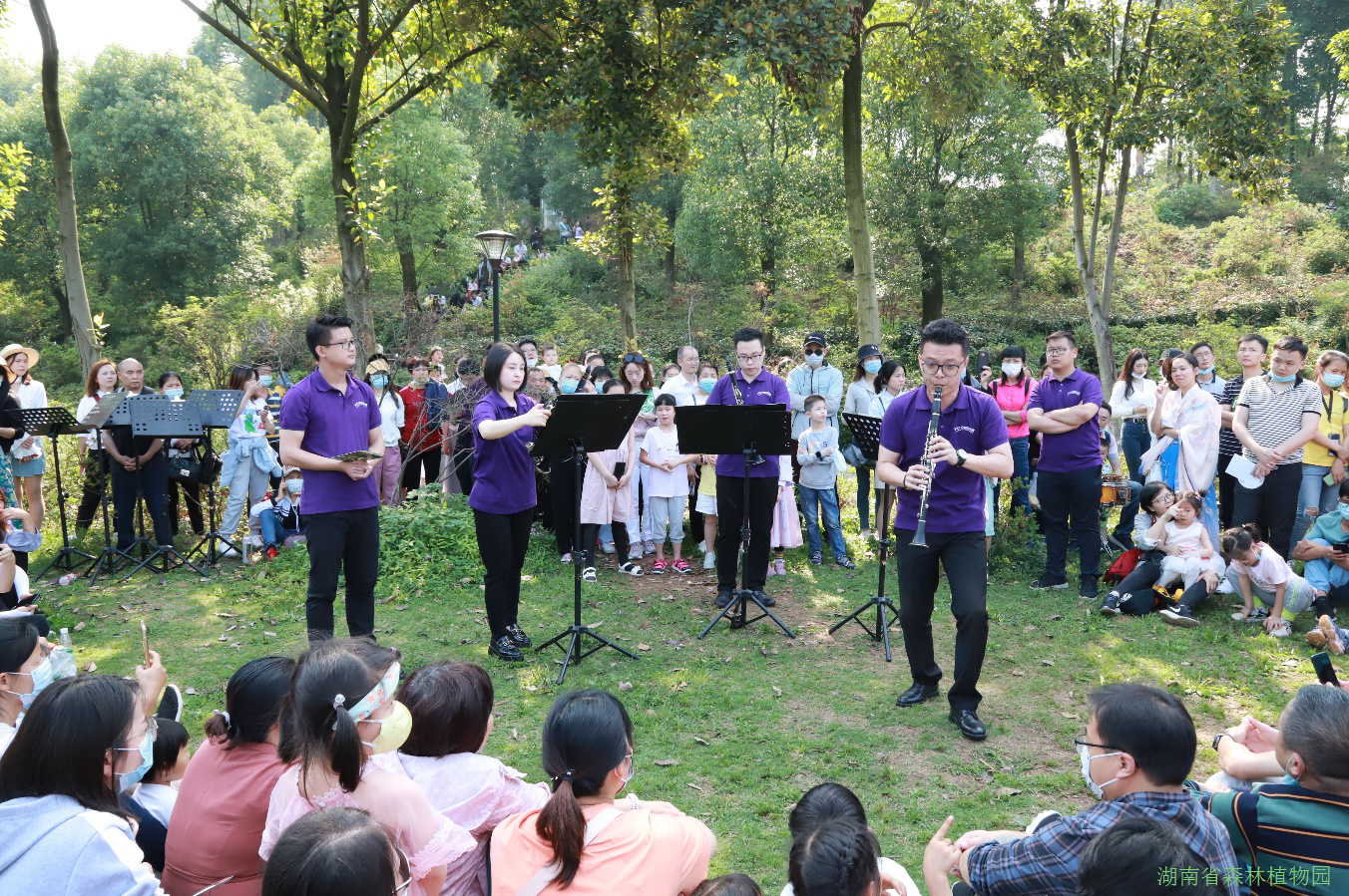 长沙交响乐团是湖南省唯一三管编制的大型职业交响乐团。有着二十多年的辉煌历史,拥有一大批艺术造诣深厚的音乐家,发展至今已在国内外享有盛誉。此次音乐会便是由国家一级指挥肖鸣任音乐总监,国家一级演奏员王智任团长亲自带队。乐团分为弦乐1组、弦乐2组、木管组、铜管组四个重奏小组,分别在我园的樱花湖、竹林、杜鹃广场、天际阁四个景点进行演奏。规格高,阵容强大。演奏的曲目不仅有柴可夫斯基《蓝色的探戈》、安德森《跳华尔兹的猫》、小约翰.施耐劳斯《蓝色多瑙河》等世界名曲,也有大家耳熟能详的《夜来香》、《牛仔很忙》等流行曲目。把殿堂级的交响乐用更亲近大自然、更贴近人民群众的方式呈现给大家。最大限度地满足广大群众的文化需求,丰富群众精神文化生活,让广大群众感觉到高雅艺术就在身边。顶着骄阳孩子们席地而坐,不辞辛苦音乐爱好者全程蹲拍……尽管现场围观游客甚多,每首曲目结束必获得热烈掌声。然而现场却又是一片“宁静”与和谐画面。一个小时的演出,大家都是意犹未尽。久久不愿离开。