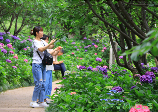 这是湖南规模最大、花色最全的绣球花展!6000平方米、近3万株的绣球花已进入盛花期。白色的“雪球”、蓝粉双色的“玉石”、蓝紫双色的“紫水晶”、红紫双色的“阿尔贝斯山”、红蓝双色的“经典红”等二十多个特色品种竞相绽放主展区位于樱花广场及樱花湖东坡。