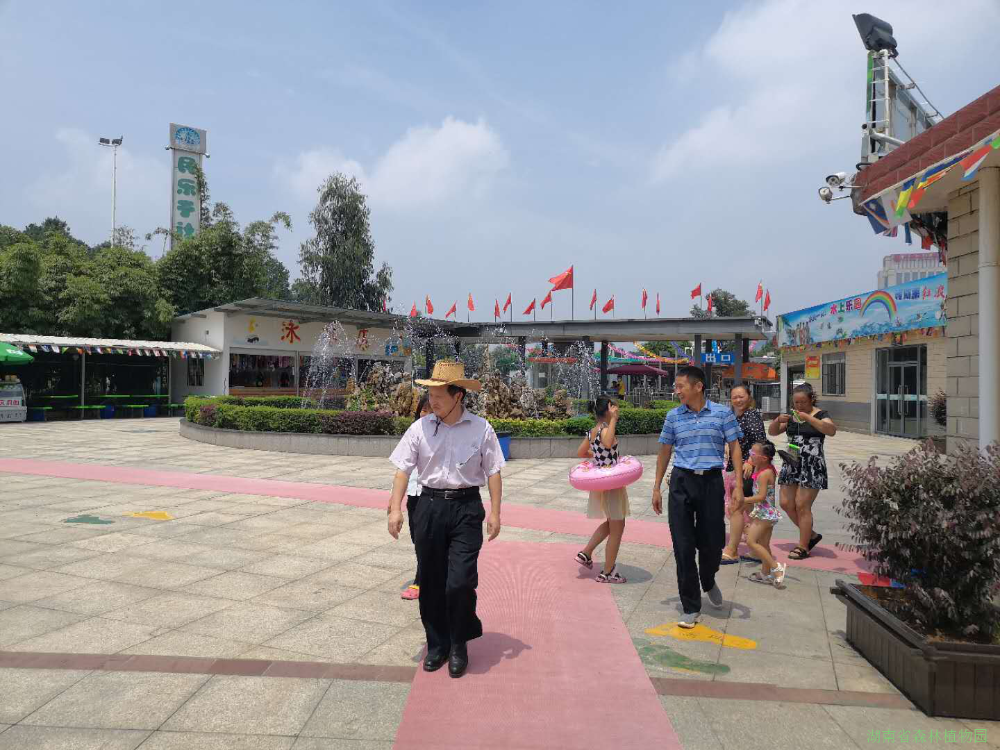 7月26日周日,天气炎热,我园水上乐园迎来人流量高峰,门口排起了等待入园的长队,泳池里人头攒动,停车场及园内交通压力较大。园党委委员、党政办主任康用权同志牺牲休息时间专程到北门区域和水上乐园慰问一线职工及察看水上乐园高峰期运行情况。