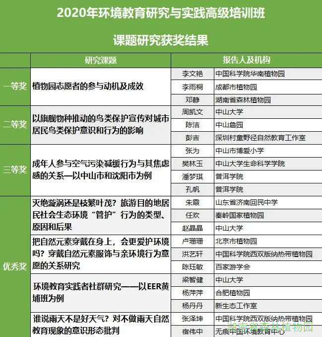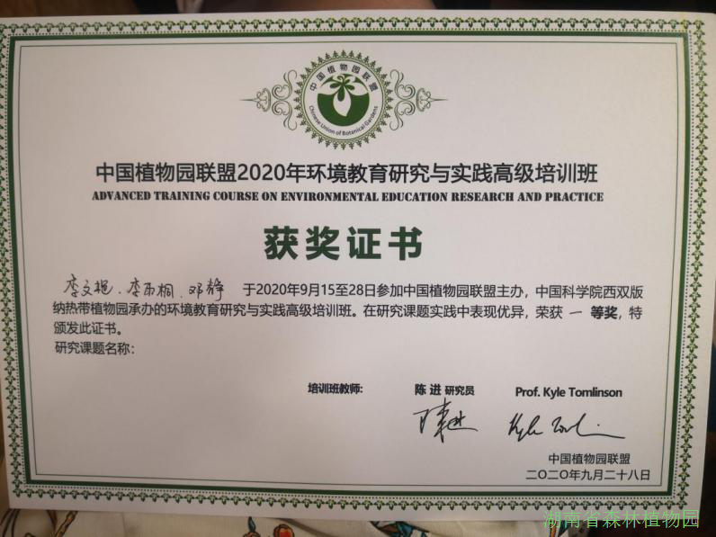我园参与中国植物园联盟环境教育培训班研究的课题荣获一等奖