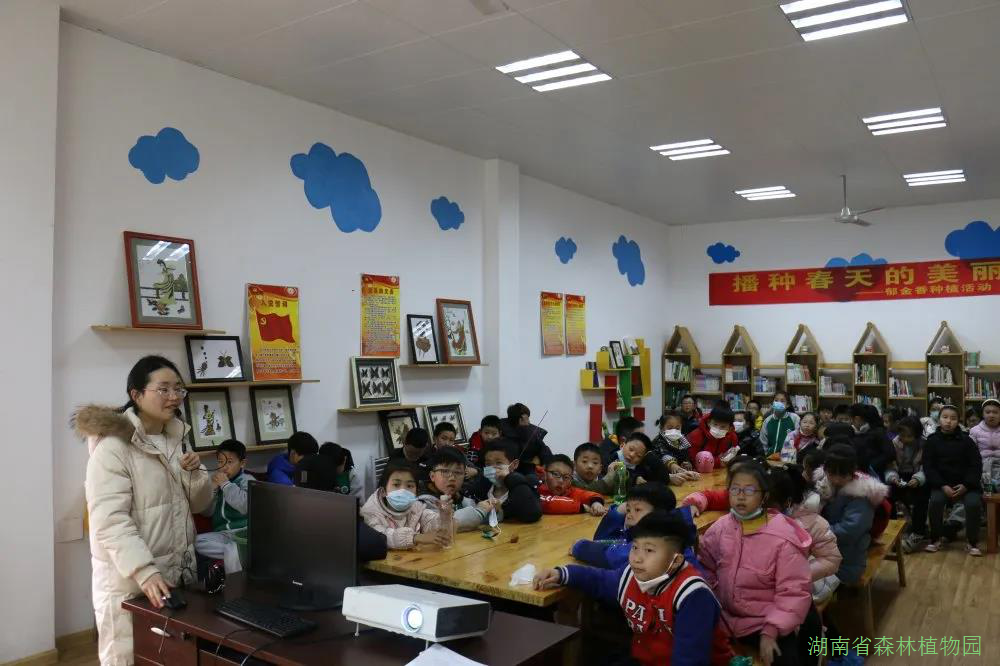 在宣教馆的图书室里,自然教育中心副主任园艺工程师黄秀老师生动地向同学们介绍了郁金香的科普知识,及种植方法等,还给同学们分享了不少郁金香的园艺作品。