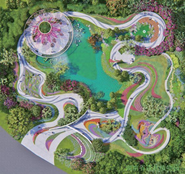 根据设计,湖南展园将通过植物配置营造良好的自然生态环境和不同季相、不同色系植物的生长和视觉效果, 打造具有多样观赏价值的多色彩,多层次,多形态的四季植物景观,突出“花开中国梦”的展园特色,构建自然优美的园林绿态,彰显湖南山、水、林、田、湖、城的地域特色景观。