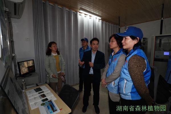 省科技厅一行先后考察了北门名花广场、樱花湖和长株潭生态站监测站等区域,并对我园植物种质资源、长株潭生态站的基本情况及研究进展等进行了了解。考察过程中考察团还沿路向游客发放宣传资料,对世界水日、中国水周进行了宣传。通过参观考察,考察团不仅对资源保护进行了宣传,同时还掌握了生态资源研发概况,感受到了人与自然和谐共生的城市森林环境。