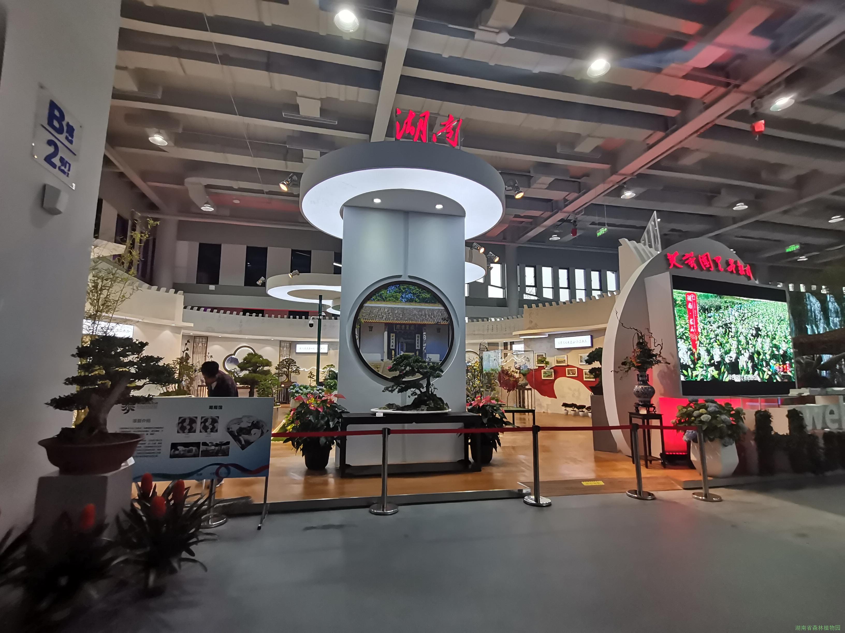 本次花博会湖南计划选送各类展品近400项,分4批选送。第一批展示了秋海棠、虎耳草、随手香、聚花过路黄、大花萱草等花卉新品种22个;盆景和兰花等湖南特色花卉48盆,插花与压花花艺作品30件,还有盆花与奇石等。展出的水旱盆景代表了国内最高水平,插花和压花作品独具特色。湖南馆受到了专家和游客的一致好评。