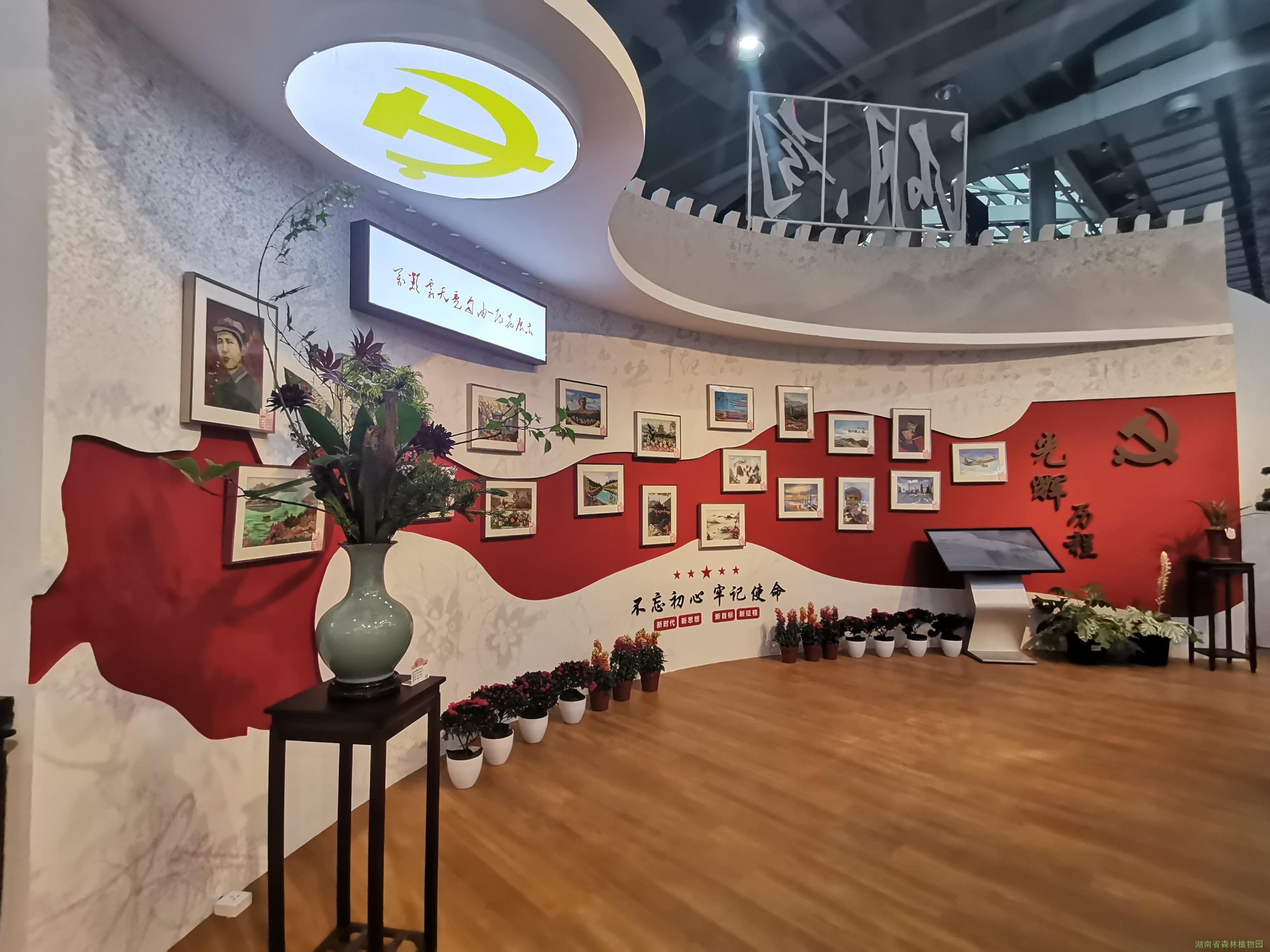 湖南馆位于花博会复兴馆B馆内,占地300平米。湖南馆通过公开投标由广州市尚雅展示设计有限公司负责设计与施工。展馆分设5个区域,主要展示湖南花卉新品种、新技术、特色花卉和花卉艺术。湖南馆以一朵盛开的芙蓉花造型,用璀璨溢目的华灯和行云流水的线条,营造出了芙蓉国里尽朝晖的美丽景象。
