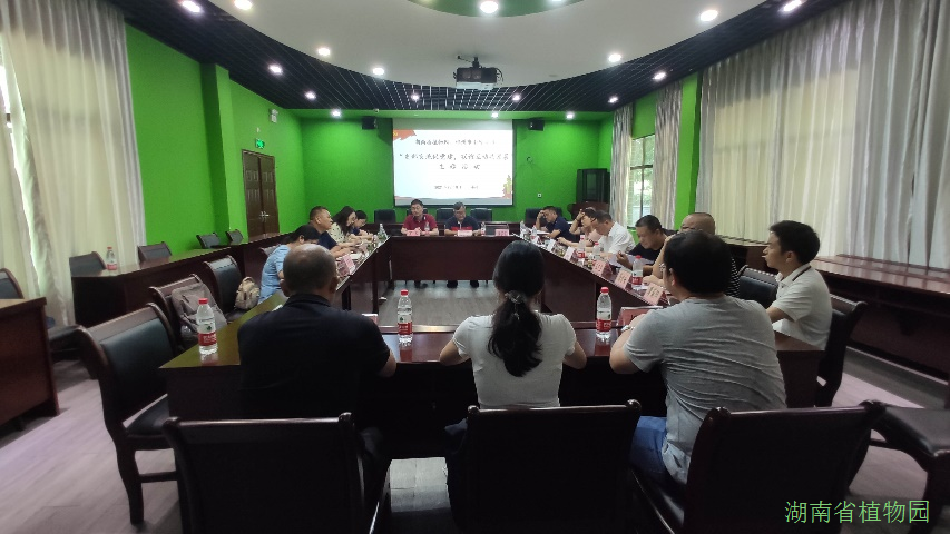 在郴州林科所主题活动座谈中,林科所所长何才生对林科所党支部工作情况作介绍,省植物园党员同志分别阐述业务工作和支部合作的发言。双方一致认为可在科技业务、科普宣传、支部工作中继续深入合作与交流。