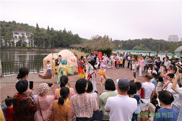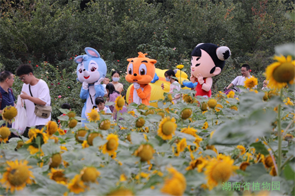 活动包括卡通人偶巡游、cosplay秀两大部分。超级飞侠、虹猫、蓝兔、山猫吉咪等喜闻乐见的经典卡通形象,穿梭在向日葵花海中,引起了游客特别是小朋友们的围观,樱花湖广场的cosplay秀更是将活动的气氛推向了高潮,与虹猫握个手,和蓝猫击个掌,再与动漫人物合个影,顺便猜猜她是哪个番的角色。在欣赏cosplay舞蹈秀的同时,省植物园还为小朋友们准备了好吃的糖果作为节日的小惊喜。