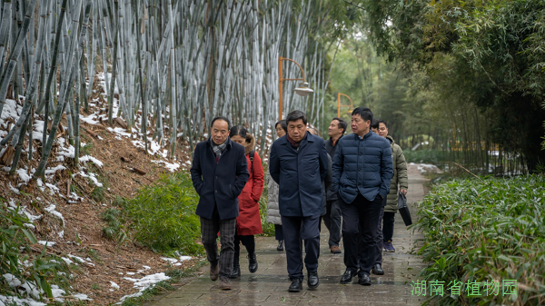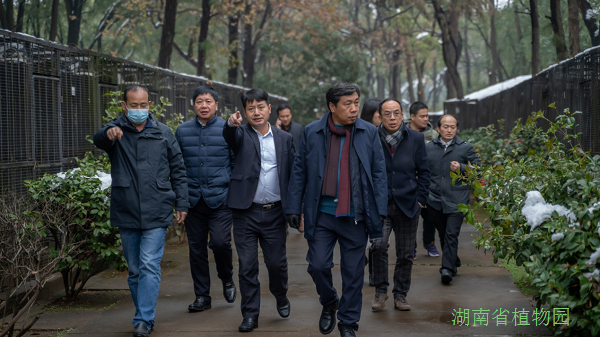 胡长清一行详细询问了省植物园建设、管理以及应对低温雨雪冰冻天气等情况,与有关同志进行了深入交流。胡长清对省植物园近年来的工作给予充分肯定。他指出,自实行省市共建以来,植物园抓住了重要机遇,发展势头良好,转型升级成效明显,主业主责不断强化,生态品质不断提升,园区管理平安有序。下阶段,省植物园要充分发挥生态优势、科研优势,主动参与岳麓山实验室林业片区建设,进一步提升园区品质、科研水平,着力实现高质量发展。