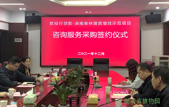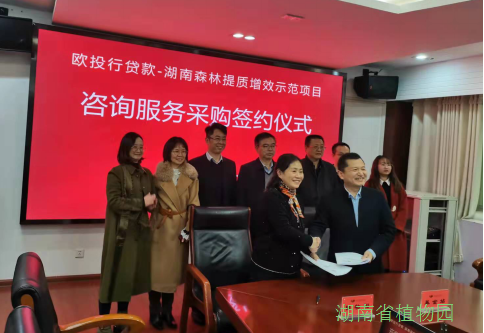 近日,我园受邀参加湖南省林业基金站组织的“欧洲投资银行贷款——湖南森林提质增效示范”研究咨询项目签约仪式。我园中标该项目的主要内容为森林多功能效益评价技术研究咨询服务,资金100万元,全部由欧洲投资银行资助,该项目是我园首次在社会公开竞标中中标外资研究项目。胡俊东副主任带队出席了咨询服务采购项目的签约仪式,代表我园签署了项目合同。