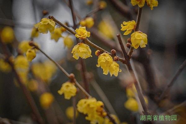 今天是农历腊月初八,腊八节。老话说“腊七腊八,冻掉下巴”,也就是说腊八是一年中最冷的时候。此时园中的蜡梅已经进入花期,梅园入口处的数十株蜡梅正用一抹清香向新年问好。