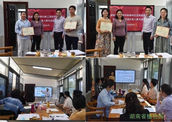 会上,胡主任为国家杜鹃工程技术研究中心和长株潭城市森林生态站四位科研平台管理负责人颁发聘书,肯定了大家在平台创建工作的重要成绩,提出了后续管理和运行的要求和期望。随后园生态所全体成员逐个就近期工作情况进行了汇报,四位项目牵头人以学术交流的形式对重点项目的技术路线、进展、难点以及预期成果进行了详细汇报。研讨交流会上大家积极发言,交流科研进展。园生态所负责人对全所工作情况进行了点评及指导,并对后期重点工作安排进行详细部署。胡主任在总结发言中,充分肯定了本次学术研讨会议的成效,提出搞科研不仅要深耕一线埋头苦干,更要进行思想上的碰撞,加强学术交流,应该定期常态化举办。