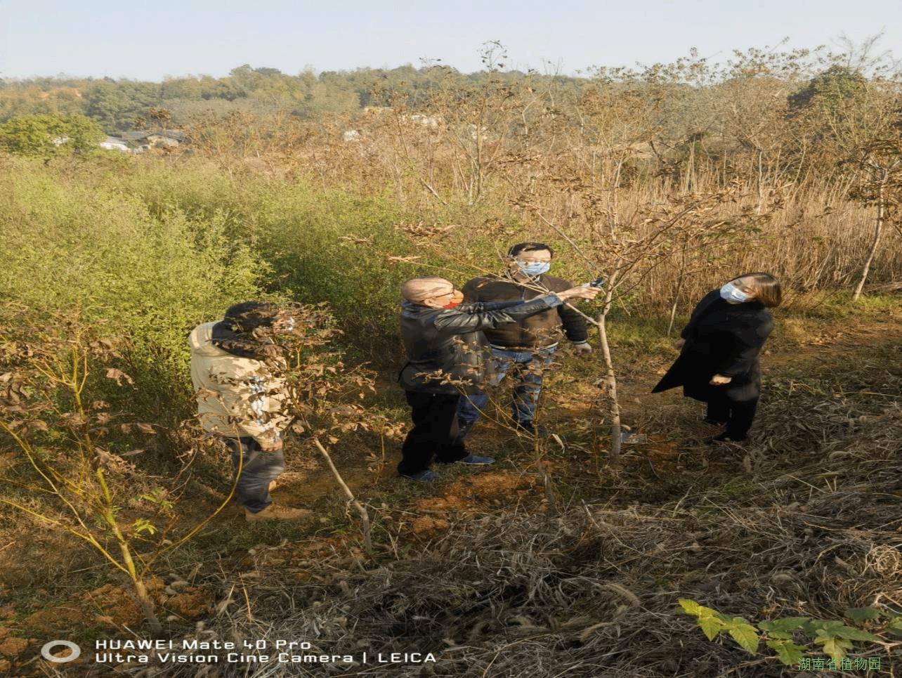 12月14日,园林景观所首席专家、项目负责人陈永安研究员率领课题组部分成员赴湘潭基地安排部署工作,对基地采取的抗旱措施表示肯定,在百年不遇的干旱面前,确保苗木成活率保持在95%以上,成绩来之不易。陈永安带领项目组成员对基地进行踏查,安排部署基地下一步规划设计及相关试验工作。结合今年进行的多种叶面肥对青钱柳生长影响的经验总结,就青钱柳修剪技术要点进行了示范,根据项目要求,科学开展修剪整形,提高青钱柳叶用林产量作为青钱柳标准化生产示范基地建设主要内容之一,陈永安研究员结合自身的果树专业特长,耐心细致地进行了现场示范,向课题组技术人员及基地维护人员详细讲解青钱柳修剪整形的关键技术要点,为明年早春基地全面开展青钱柳修剪整形工作及完成项目年度计划打下了坚实的技术基础。
