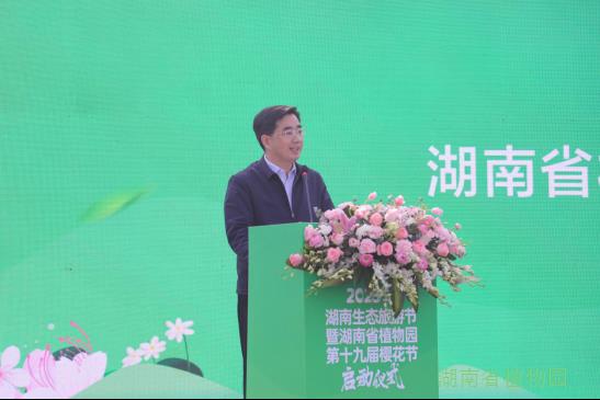 活动现场,湖南省植物园党委副书记、主任马涛致欢迎辞,湖南省林业局党组成员、总工程师胡锋致辞,宣布开幕并和湖南省林业局自然保护地中心主任刘沙、湖南省植物园党委书记刘玮以及长沙市林业局、雨花区人民政府等承办单位代表一起上台按下活动启动键。