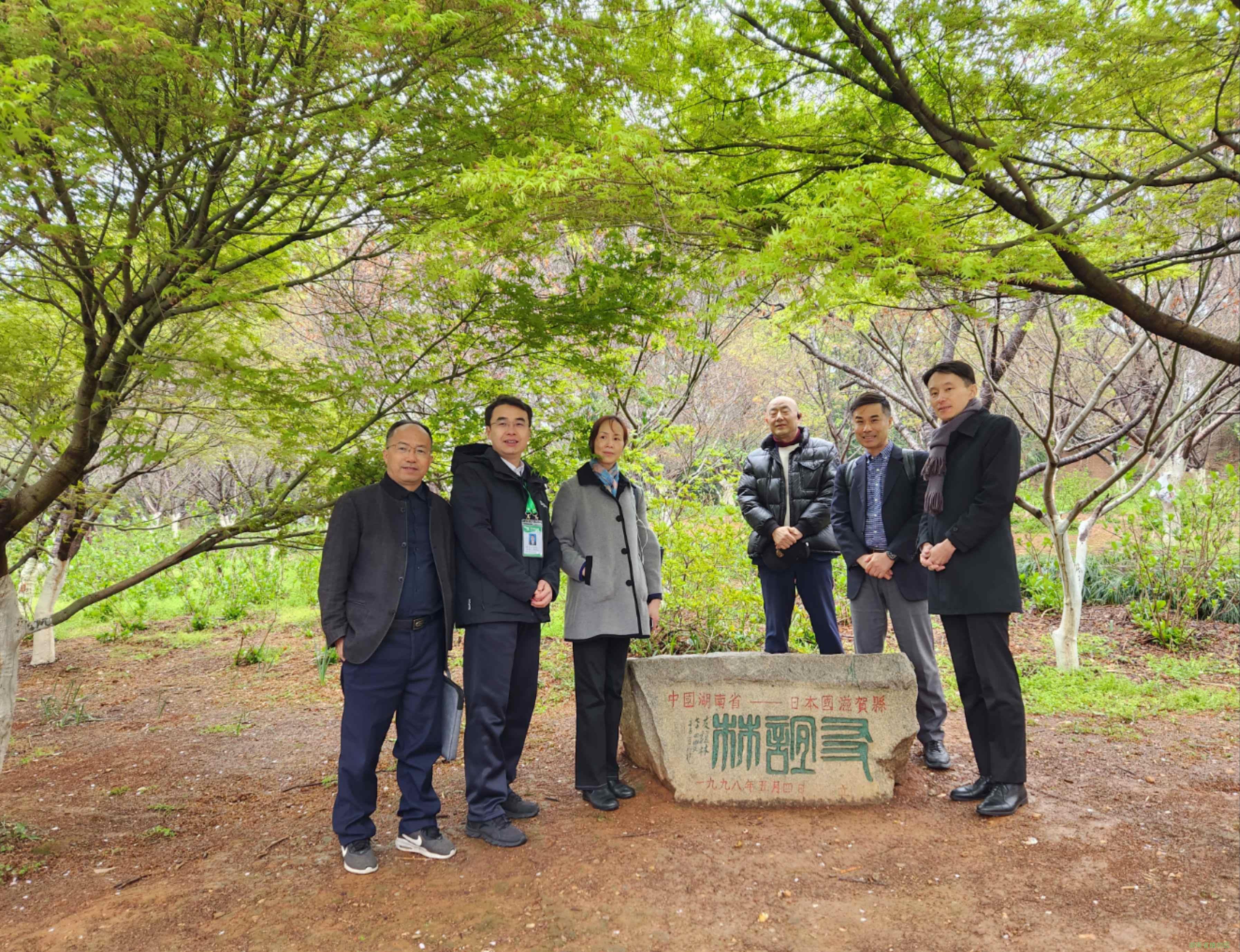 事务所一行参观了名花广场、樱花湖等地,双方在象征湘滋友好往来的“友谊林”文化纪念碑前合影。马涛主任主持了座谈会。会上,双方互相介绍了基本情况,展示了地域特色美景,共同回顾了自1983年湖南省与滋贺县结成友好省县以来,双方以樱为媒开展的友好交流和缔结的深厚友谊。分管国际合作与对外交流的李柏海副主任介绍,1985年滋贺县赠送2000株染井吉野樱给湖南省人民政府作为礼物,湖南省人民政府转交给湖南省林业厅,当时恰逢湖南省森林植物园筹备建设,便将其中的一部分樱花定植在园区内,30多年过去,这批樱花在我园的细心呵护下,已成了长沙市著名的赏樱景点,这批樱花树承载着并见证了湖南人民与滋贺县人民的深厚友谊。
