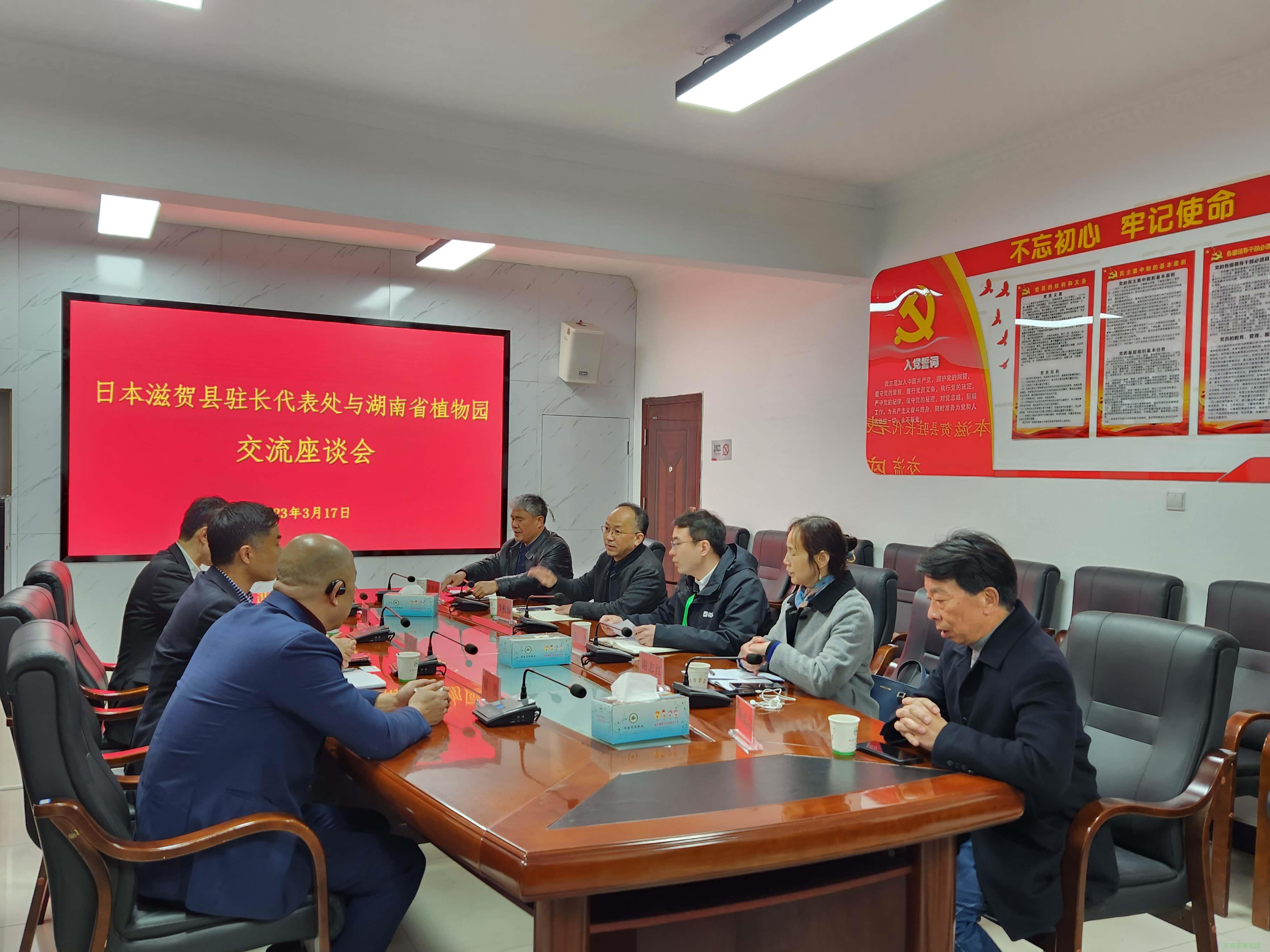 3月17日,日本滋贺县湖南事务所新任所长西村文彦先生与即将卸任的原所长荻野大先生一行来我园开展友好交流。省林业局科技外事处谢志红副处长、省植物园马涛主任与李柏海副主任及相关人员陪同考察并参加座谈交流。