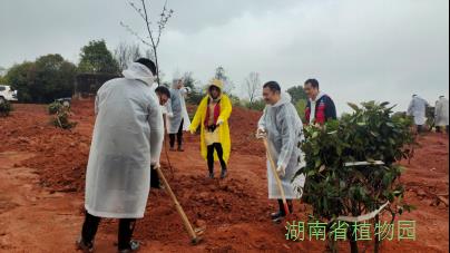 在简短的启动和揭牌仪式后,植树技术人员带领各单位前往植树区域,详细讲解植树的步骤。大家现场消化领悟后,自发分组,默契配合,挖坑、扶苗、铲土、浇水。尽管当天下起了小雨,但干部青年们热情十足,活动现场一派热火朝天的劳动景象, 经过1个多小时齐心协力,栽下红叶石楠、茶花、樱花、银杏、红枫等近千株。