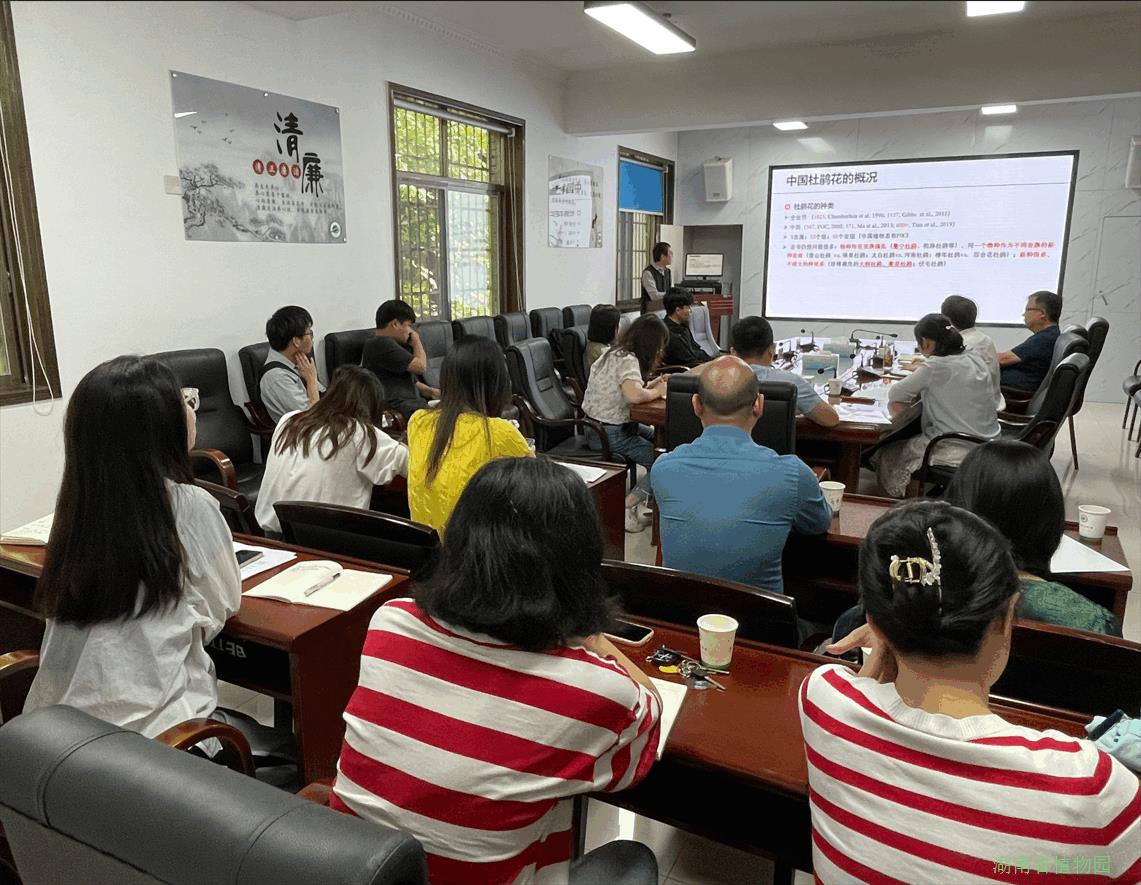 会上,马永鹏研究员作了题为“中国杜鹃花属植物的种质资源利用与保护”的学术报告,从杜鹃种质资源概述、新优品种选育、中国杜鹃花的保护、杜鹃花濒危原因等方面做了深入解析。会议期间我园科技人员就花卉新品种测试站的创建、高海拔杜鹃引种驯化、杜鹃的保护和开发利用、花卉种质资源创新等研究内容与马永鹏研究员进行了深入交流讨论。会后廖菊阳副主任表示要以此次学术交流为契机,从3个方面加强联系与合作,他指出,一是加强植物资源的保育共享,更多的从云南引种杜鹃种质资源;二是构建联合研究框架,联合开展资源调查、申报重大科研项目等;三是形成组织方面的协同机制,形成常态交流,从科研团队组建和人才培养方面加强合作。会后,马博士一行到杜鹃专类园、杜鹃工程中心实验室和核心种质资源库进行了实地考察与交流。