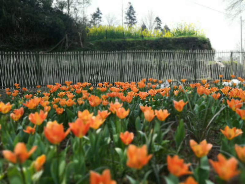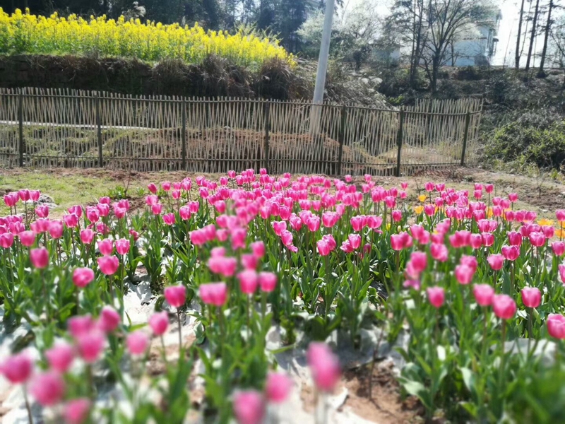 在湖南省森林植物园的辅助引种与指导下,泸溪县省四星级乡村游区点浦市印象与泸溪县国家少数民族特色村寨新寨坪试种郁金香成功。五色郁金香镶嵌于油菜花盛开的花海中,相得益彰;郁金香与这里的百年古树群、山野樱花、桃花、梨花交相辉映,让深度贫困村新寨坪村美得纯粹、美得烂漫、美得让人赞不绝口,引得游客纷纷前来踏春寻美(图片由泸溪县旅游局工作人员提供)。