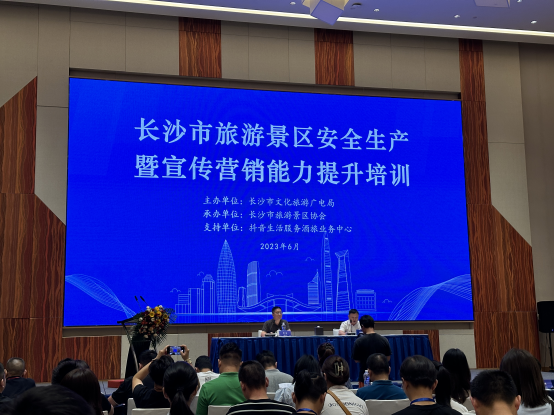 为贯彻党中央和省市关于安全生产工作的决策部署,落实市安委会2023年第六次全会精神,全面提升旅游景区新媒体平台宣传营销能力,6月27日—28日,园党委委员康用权带队参加长沙市旅游景区安全生产暨宣传营销能力提升培训班。本次活动由长沙市文化旅游广电局主办,长沙市旅游景区协会承办,抖音生活服务酒旅业务中心支持。长沙各区县(市)文旅部门负责同志、等级旅游景区、星级乡村旅游区(点)、精品旅游民宿和文旅新型业态代表等220多家企事业单位共300多人参加了此次培训。