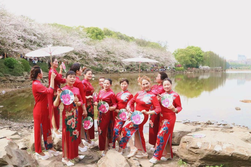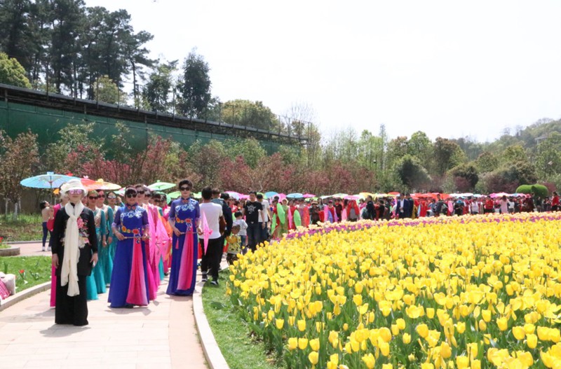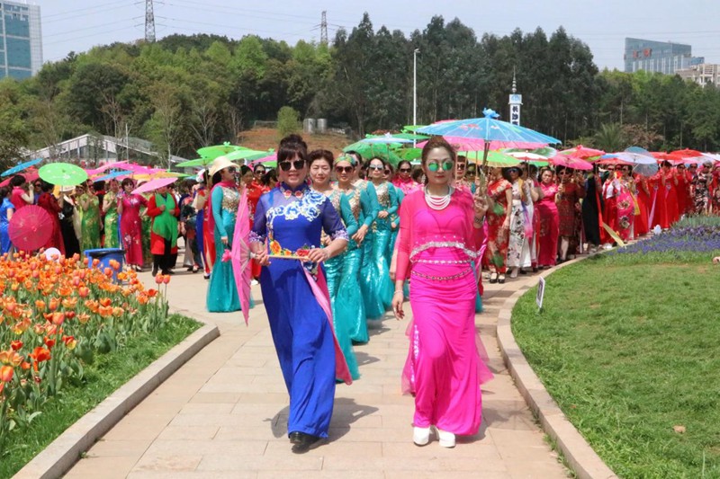 阳春三月,我们在绵绵春雨的间隙中迎来了又一个春光明媚、风和日丽、鸟语花香的春日。一片片红、一片片橙、一片片紫、一片片黄……黄色,是阳光的颜色;黄色,代表了乐观与健康。快看!姹紫嫣红的花海中迎面走来了一群身着各式旗袍、晚礼服以及民族服饰的“花魁”。她们是业余模特培训班的时尚娭毑们。个个步态轻盈、袅袅亭亭、梳云掠月、温文尔雅。如若不凑近去看见她们脸上岁月的痕迹,无人相信她们个个都已是年过花甲的老妪。300多人的巡游队伍顿时成为游人、媒体聚焦的中心。游客们情不自禁的感叹:“哇!好美啊!”她们的出现为这满园的春色增添了又一道靓丽的风景线。