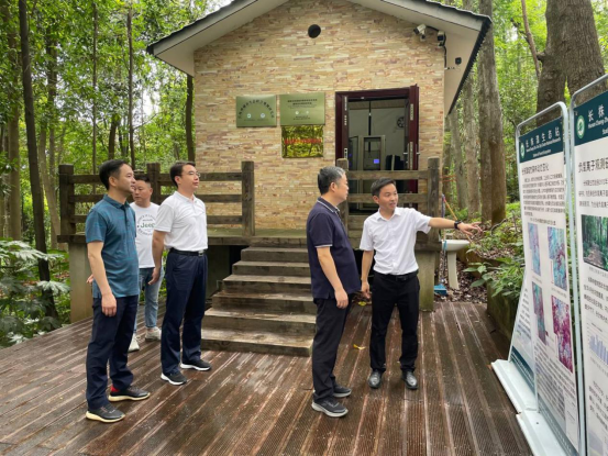 2023年7月4日,长沙市林业局总工程师张德琼一行4人来我园长株潭生态站考察交流,园主任马涛、副主任廖菊阳、生态所科研人员等陪同考察。