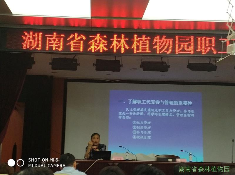 为进一步加强职工代表大会制度建设,发挥职工代表的监督作用,提高职工代表的参政议政能力,5月8日上午,湖南省森林植物园举办了职工代表培训会,培训由我园工会主席胡俊东主持,园领导班子成员、工会委员、各中心处室负责人和职工代表50多人参加了本次培训。