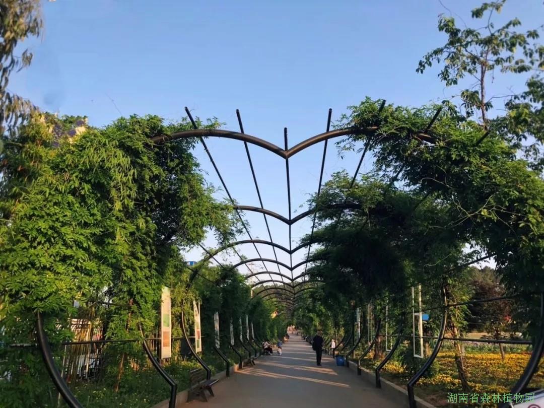 紫藤长廊可以说是最浪漫的路了。绿荫环绕,整体形成一个绿色的心形,清新而浪漫。长廊下贴心地摆放着木质长椅,营造着浪漫的气氛,不失为一个绝佳的爱情圣地!