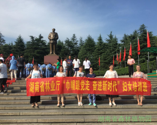 为深入学习贯彻党的十九大精神,引导广大妇女不忘初心,坚定理想信念,牢记使命,勤奋敬业,争做新时代女性。7月26日-27日,我园妇委会委员代表共6人赴湘潭韶山参加省林业厅直属机关委员会举办的“金帼跟党走,奋进新时代”妇女培训班活动。