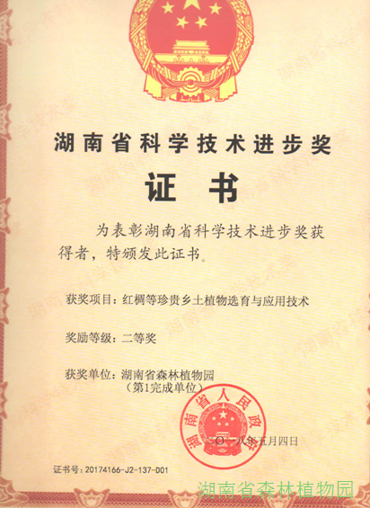 我园申报的湖南省科学技术进步奖 “红椆等珍贵乡土植物选育与应用技术” 项目荣获湖南省科学技术进步二等奖。