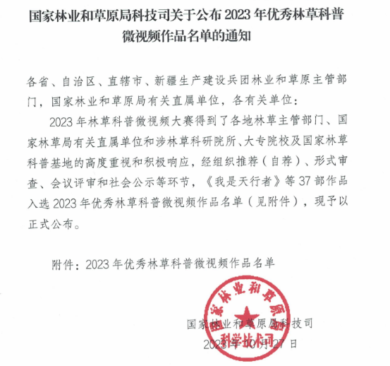 省植物园科普微视频入选2023年优秀林草科普微视频作品名单