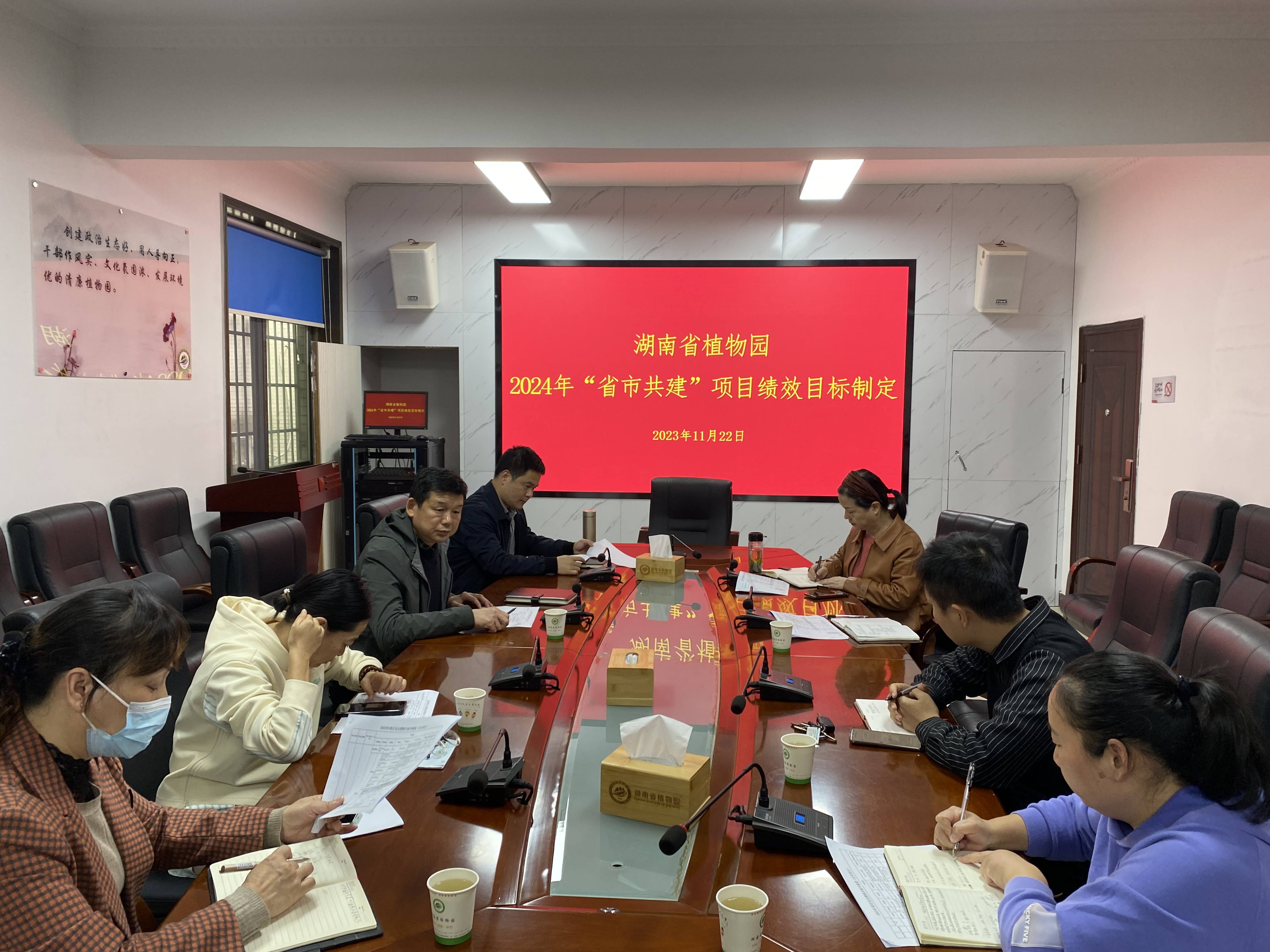 2023年11月22日下午,省植物园召开了“省市共建”项目2024年绩效指标修订商讨会。园党委委员、副主任蒋利洪主持会议,财务部及相关部门负责人参加会议。