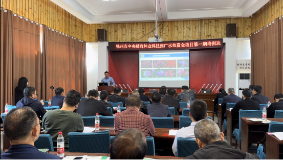 329日,由株洲市林业局主办的中央财政林业科技推广示范资金项目培训班在株洲市茶陵县举行。湖南省林业局科学技术与国际合作处处长李玉平、二级调研员陈佳辉、副研究员孟勇茶陵县副县长刘军勇、株洲市二级调研员许望生等出席开班仪式并讲话,来自湖南省植物园以及株洲市各林业单位部门约90名代表参加了培训,我园专家作为授课专家应邀参加。