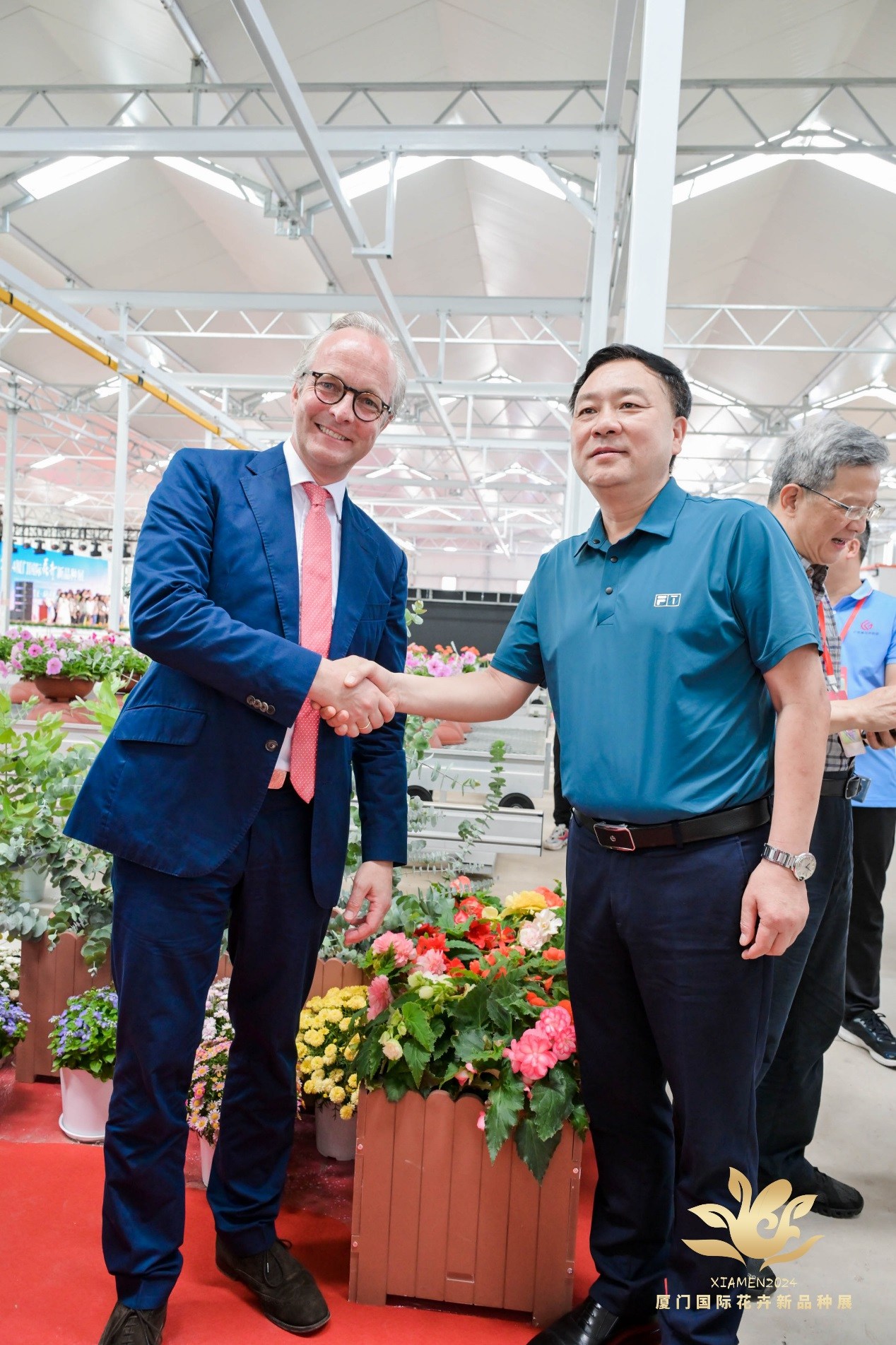 4月21日至23日,2024厦门国际花卉新品种展(简称“新花展”)在厦门海沧区棠潮园艺科技园区举办。省林业局二级巡视员欧阳叙回应邀出席会议,我园副主任李柏海一行陪同参加相关活动。