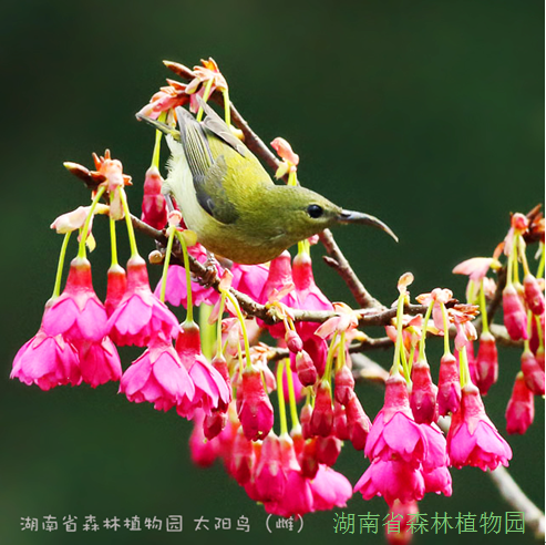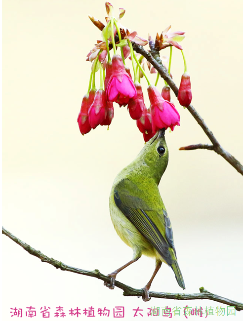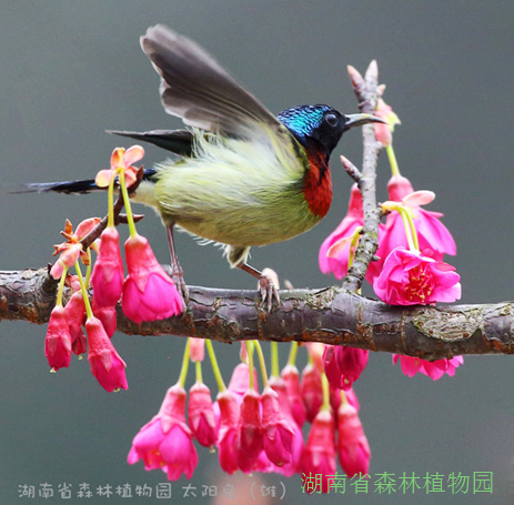 太阳鸟对生态环境要求很高,主要以花蜜为食,有利于传播花粉、繁殖果木。每年2-4月份,湖南省森林植物园的樱花相继盛开,喜食花蜜的叉尾太阳鸟便被吸引过来。摄影爱好者也会在这个时候聚集,只为抓拍叉尾太阳鸟悬停瞬间的动感之美。