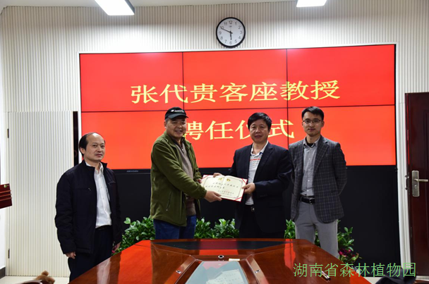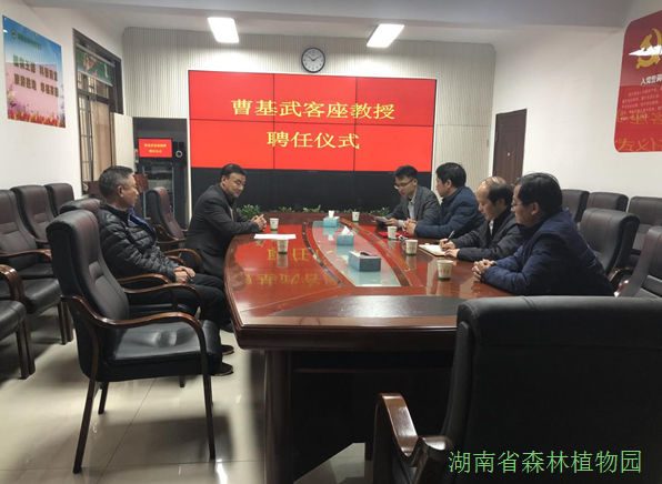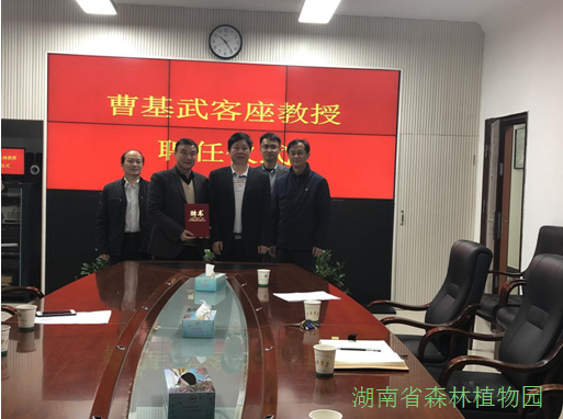 2018年12月1日,我园在行政楼二楼会议室举行了中南林业科技大学林学院硕士生导师曹基武教授、吉首大学张代贵教授为客座教授的聘任仪式。仪式由我园党委书记彭春良主持,并为两位教授颁发聘书,园党政办、人教处、植物信息所等主要负责同志参加聘任仪式。