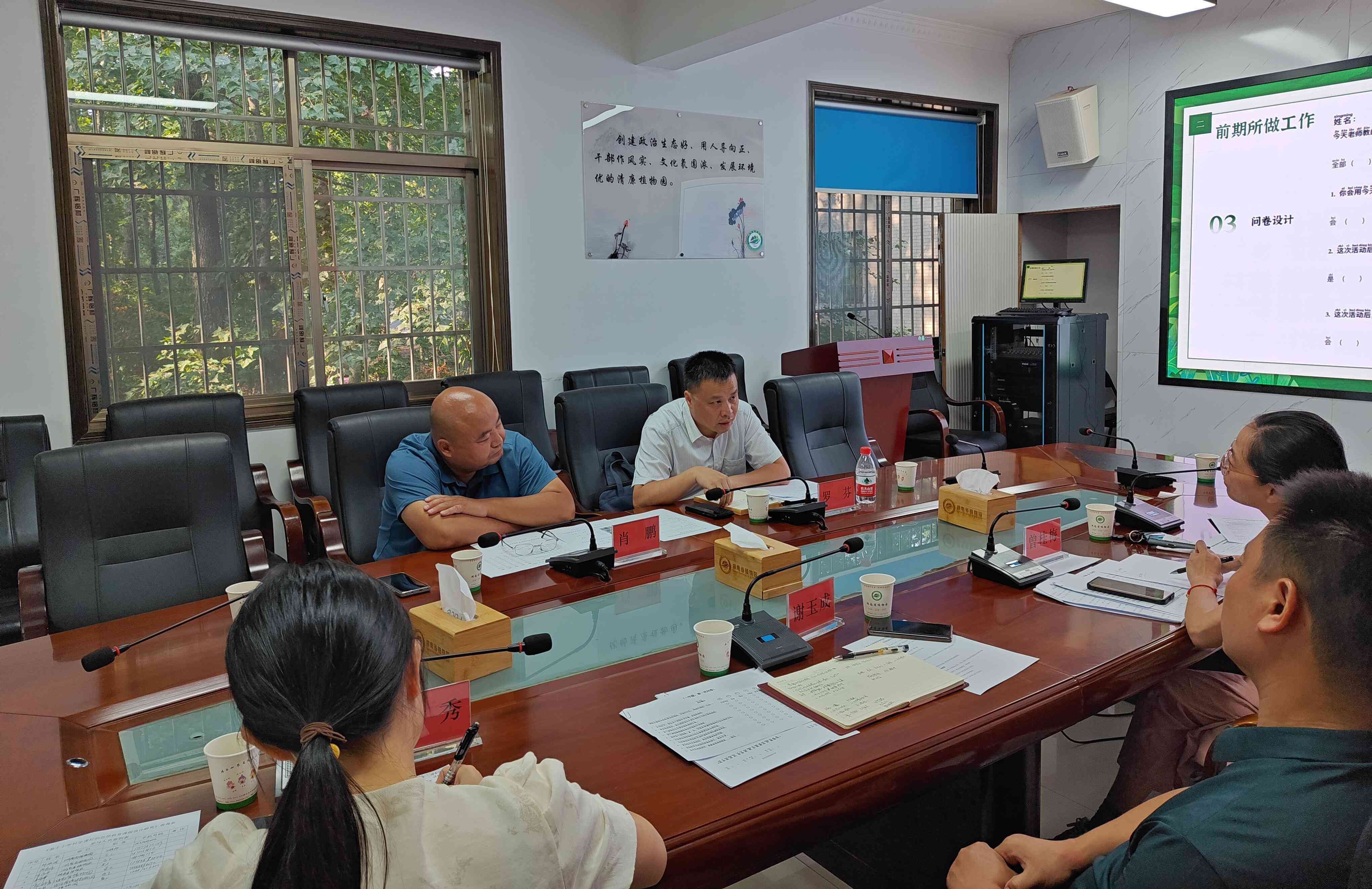 8月26日,我园自然教育中心邀请中南林业科技大学国家公园与旅游学院院长罗芬、湖南省科学技术协会科学技术普及部副部长肖鹏两位专家来园对湖南省林业科技创新攻关项目《基于小学科学课程的自然教育课程设计研究》进行指导。园党委委员、副主任谢玉成,项目组成员及相关部门人员参加会议。