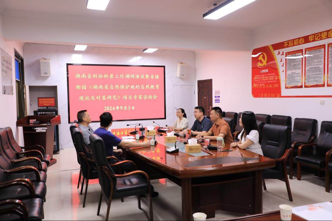 9月3日下午,湖南省科协科普工作调研座谈暨《湖南省自然保护地的自然教育现状及对策研究》项目专家咨询会在我园召开,省科协科普部部长陈紫封一行受邀来园指导,园主任马涛,党委委员、副主任谢玉成,自然教育中心负责人及部门人员参会。