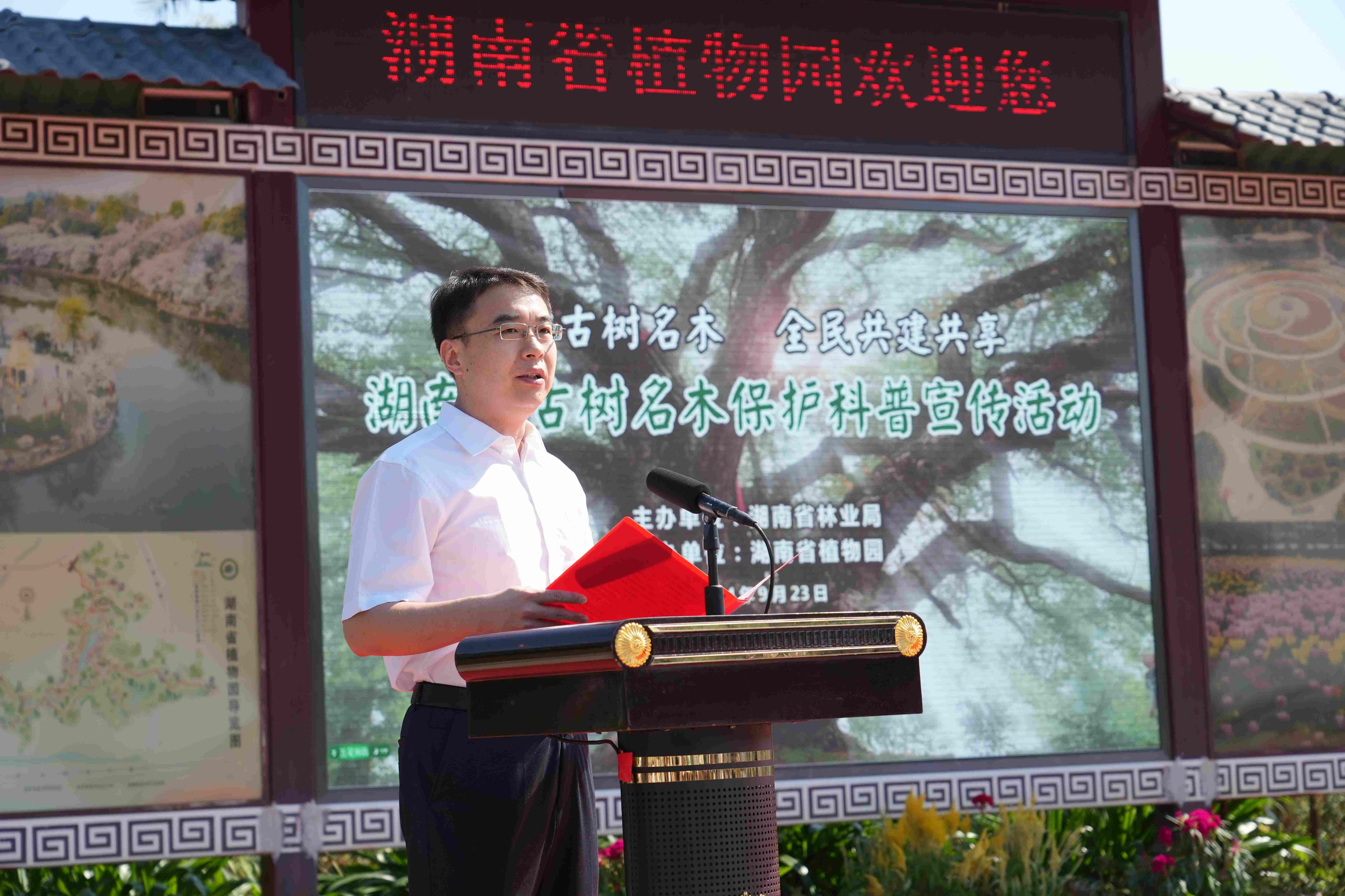 9月23日上午,湖南省古树名木保护科普宣传周在我园启动。本次活动的主题为“保护古树名木,全民共建共享”。启动仪式由省绿委办专职副主任、一级调研员欧日明主持,省植物园主任马涛致辞,省林业局二级巡视员夏艳萍宣布活动启动。园党委书记刘玮,副主任胡俊东、谢玉成,党委委员谢科及园干部职工出席了启动仪式。