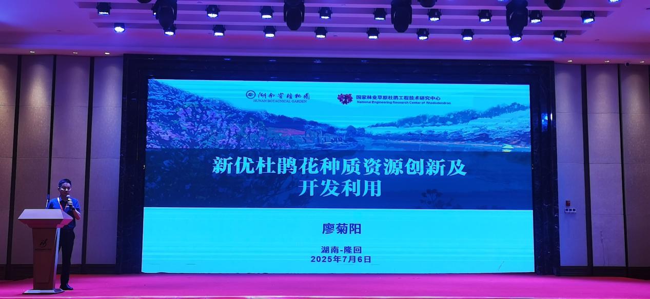 在大会报告环节,湖南省植物园主任、博士生导师廖菊阳作了题为《新优杜鹃花种质资源创新及开发利用》的专题报告,分享了湖南省植物园在杜鹃花种质资源收集、创新和开发利用方面的最新成果。他指出,作为湖南省特色园艺植物,杜鹃花具有极高的观赏价值和经济潜力,其种质资源的创新与开发利用,不仅可以丰富园艺植物品种资源,更能为乡村生态旅游发展提供新支撑。廖菊阳还向大会介绍了湖南省植物园近年来的科研成果和发展历程,获与会专家的一致好评。