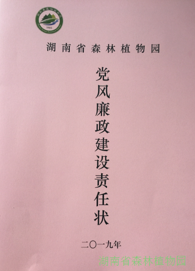 湖南省森林植物园《2019党风廉政建设责任状》明确了园党委、纪委、各部门负责人在党风廉政建设工作中职责,同时确定了责任内容、考核和责任追究制度。责任书要求各责任人结合实际,组织廉政教育,提升队伍素质;落实管理责任,加强廉政风险防控,促进行政廉洁;建立长效机制,加强监督检查,确保中央“八项规定”、省委“约法三章”落到实处,大力营造务实、清廉的氛围,深入推进反腐倡廉制度建设。