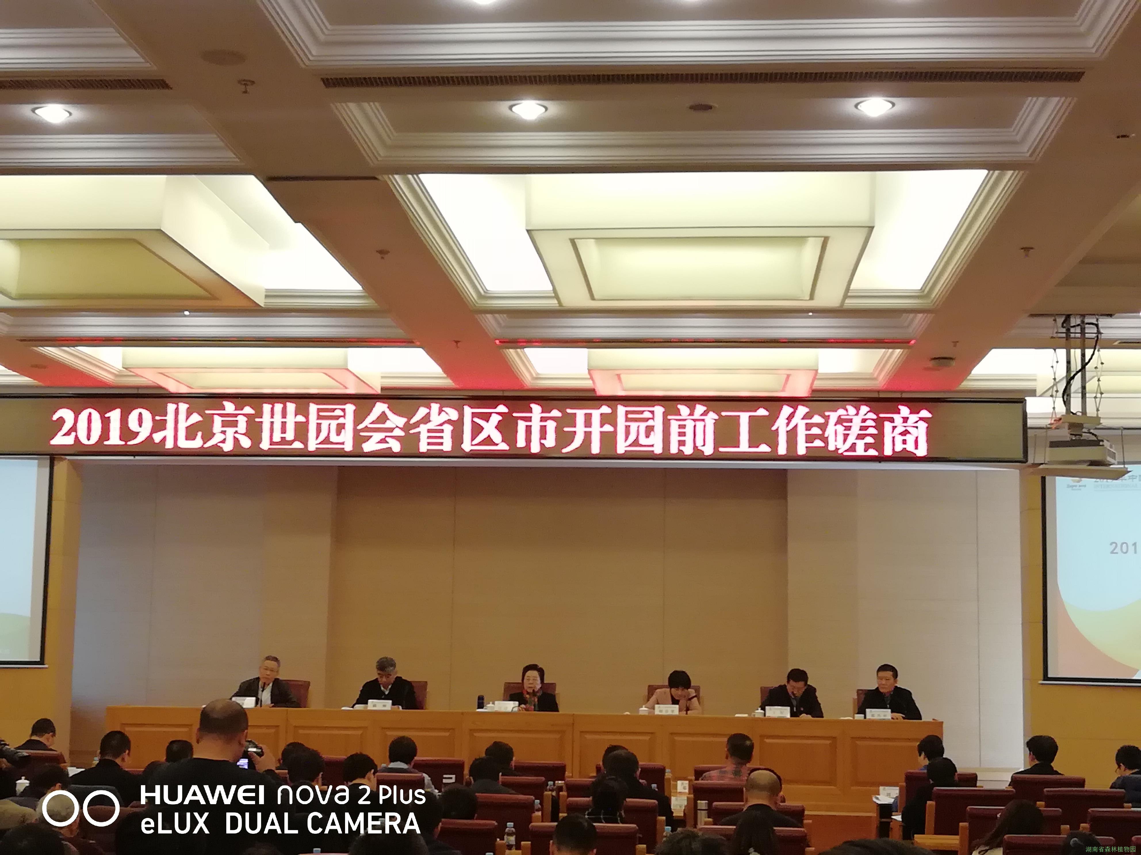 2019年3月1日,全国绿化委员会、中国国际贸易促进会、国家林业和草原局、中国花卉协会、北京市政府在北京市延庆区夏都会议中心,召开了“2019北京世园会省区市开园前工作磋商会议”。中国花卉协会会长江泽慧,全国绿化委员会办公室专职副主任胡章翠,中国贸促会副会长陈洲,北京市政府副秘书长王军等领导出席会议。相关参会单位和人员有:国家林业和草原局生态司,中国贸促会贸易投资促进部,中国花卉协会秘书处,北京世园局,延庆区相关单位,31个省区市主管部门主管领导,业务处室负责人。北京世园局党组书记,北京市园林绿化局局长邓乃平主持会议。
